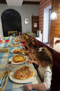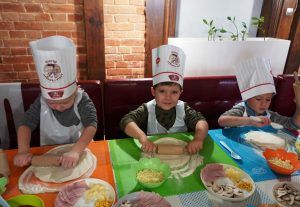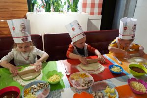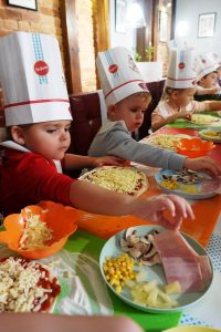 18 października Przedszkolaki z grupy Jeżyki uczestniczyły w warsztatach kulinarnych „Mały Kucharz” w Da Grasso Łuków. Celem spotkania było zapoznanie z zawodem kucharza, utrwalenie zasad właściwego zachowania w restauracji oraz kulturalnego spożywania posiłków. Dzieci własnoręcznie przygotowały włoski przysmak – jakim jest pizza, wybierając swoje ulubione składniki. Po skonsumowaniu wypieków przedszkolaki otrzymały pamiątkowe dyplomy, balony, puzzle i czapeczki „Mistrza Pysznej Pizzy”.