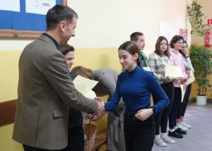 Śladem konkursu ogólnopolskiego, gdzie nagrodami były karty podarunkowe do sklepów sieci Empik, zwycięscy szkolnej edycji otrzymali z rąk pana Dyrektora vouchery do realizacji w Sklepiku Szkolnym.