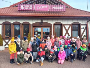 Następnie przygotowane przysmaki trafiały do wielkiego pieca, a po kilku minutach na stoły😋. Każdy ze smakiem spożywał własnoręcznie zrobioną pizzę👩‍🍳👨‍🍳.