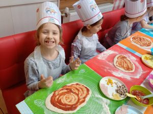 Dzieci tworzyły własne kompozycje smakowe, wybierając ulubione dodatki. Wszystkie pizze wyglądały wspaniale🤤!