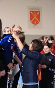 Zawodniczki z Ulana – Majoratu dostarczyły nam niesamowitych emocji na zawodach szczebla wojewódzkiego w dniu 08.05.2023r. w Kraśniku. W drodze do finałów Mistrzostw Województwa Szkół Podstawowych, w których zaszczytu udziału dostępuje jedynie sześć zespołów z województwa, z sześciu szkół podstawowych wyłonionych w drodze eliminacji gminnych, powiatowych i rejonowych znalazła się po raz kolejny, drugi raz z rzędu drużyna Szkoły Podstawowej w Ulanie-Majoracie. Zawodniczki trenera Jarosława Mazurka pokazały jak się walczy o najwyższe trofea, jak należy reprezentować swoją szkołę, gminę i środowisko na zawodach szczebla wojewódzkiego. Jednak należy pamiętać, że droga do finału wojewódzkiego nie jest taka łatwa, ponieważ aby wystąpić w finale wojewódzkim nasze zawodniczki musiały wcześniej pokonać między innymi SP NR 1 w Łukowie i SP Nr 3 w Białej Podlaskiej w zawodach rejonowych. Dokonały tego 13.04.2023 r. w Łukowie.