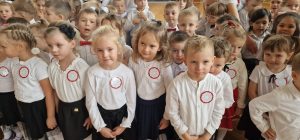 Mamy też dwie wystawy  Uczniowie klas I – III wykonali cudne prace plastyczne „Niepodległość w oczach dziecka”, które możemy podziwiać na dolnym korytarzu. Natomiast w bibliotece możemy obejrzeć wystawę książek o tematyce niepodległościowej.