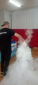 W poniedziałek 20 maja 2024 roku uczniowie naszej szkoły uczestniczyli w pokazach grupy Zelektryzowani, które w ciekawy i atrakcyjny sposób przybliżyły tajniki fizyki i chemii. Podczas tej niecodziennej lekcji dzieci brały aktywny udział w wielu ciekawych doświadczeniach. Dzięki różnorodnym substancjom i rekwizytom uczniowie mogli poeksperymentować, jak w laboratorium.