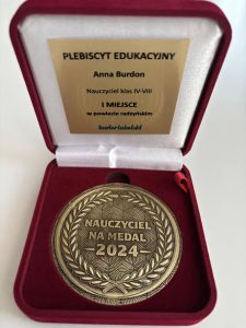 Z przyjemnością chcemy poinformować o ogromnym sukcesie i wyróżnieniu naszej nauczycielki matematyki Pani Anny Burdon, która w dn.12.02.2025 w Lublinie odebrała zaszczytny tytuł „Nauczyciel na medal 2024” za zajęcie I miejsca w powiecie radzyńskim w Ogólnopolskim Plebiscycie Edukacyjnym organizowanym przez Kurier Lubelski.