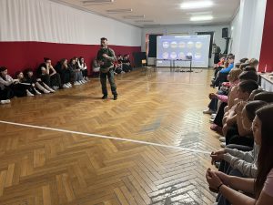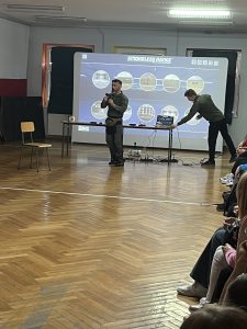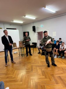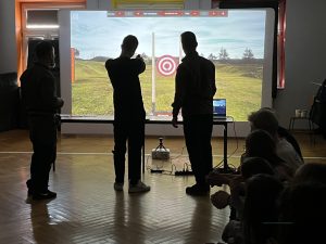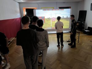 Postawa strzelecka, zasady zachowania na strzelnicy i zawody strzeleckie – tego wszystkiego doświadczyło 60 uczniów korzystając ze strzelnicy multimedialnej. Spotkanie odbyło się 21 maja w naszej szkole. Gościliśmy też uczniów z nauczycielami ze Szkoły Podstawowej w Gołąbkach . Pokaz i zawody strzeleckie zorganizowało Stowarzyszenie Granica Bezpieczny Wschód.