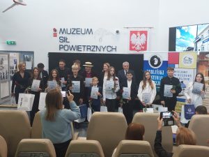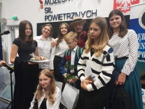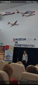 Po zmaganiach konkursowych wszyscy z ciekawością zwiedzili Muzeum Sił Powietrznych, a potem obejrzeli spektakl „Piloci” przygotowany przez grupę teatralną „Po Schodkach” z MDK w Dęblinie.