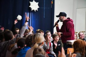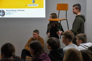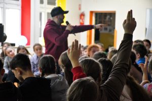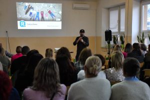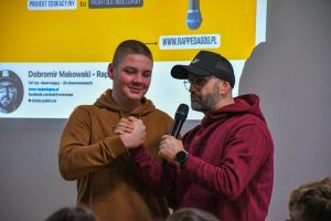 Tuż przed feriami w naszej szkole gościł Dobromir Makowski – człowiek, który od lat inspiruje młodych ludzi do wiary w siebie, odwagi i dokonywania mądrych wyborów. Jego spotkanie łączyło humor, życiowe historie i mocne przesłanie. Nasz gość potrafi mówić o trudnych sprawach w sposób prosty i autentyczny, dlatego jego wizyty zostają w pamięci na długo.